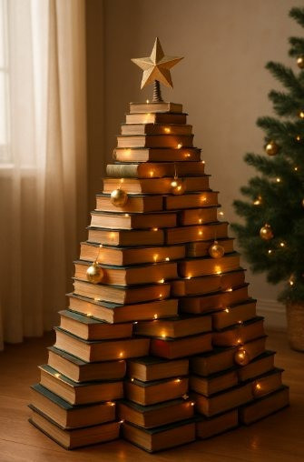 Az egyik legszebb és legegyedibb alternatíva lehet a polcon porosodó könyvekből épített karácsonyfa. Könyvek halmozva, piramis alakban egymásra rakva, esetleg egy csillaggal a tetején, néhány izzósorrral körbefonva – és már kész is az alternatív karácsonyfa.