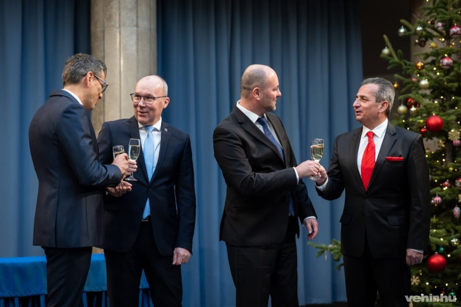 Végezetül, a hagyományoknak megfelelően Porga Gyula polgármester, Dr. Abonyi János rektor, Csillag Zsolt kancellár és Dr. Simon Attila, a vármegyei iparamara elnöke közösen kívántak boldog új évet a jelenlévőknek.
