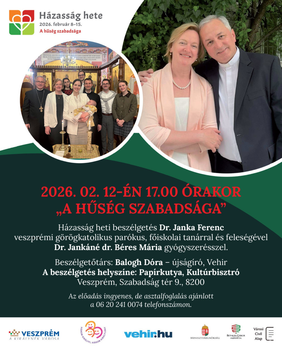 A hét egyik beszélgetése „A hűség szabadsága” címmel zajlik. Az est során Dr. Janka Ferenc és felesége, Dr. Jankáné dr. Béres Mária osztják meg tapasztalataikat a hosszú távú párkapcsolatok működéséről. A beszélgetés az elköteleződés, az önállóság és az együttélés során felmerülő dilemmák mentén halad, konkrét élethelyzetekre támaszkodva. A forma párbeszédre épül, a résztvevők kérdései is helyet kapnak.