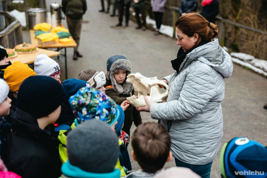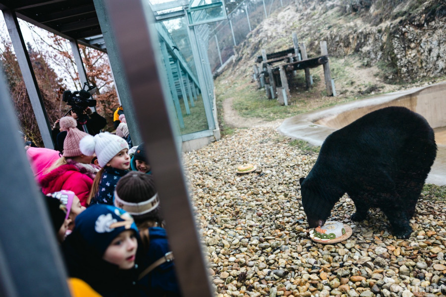 Hétfőn délelőtt nem kellett attól tartani, hogy hosszú árnyékok kísérik a medvék előbukkanását, tekintettel, hogy egész nap szürke, nedves időjárás volt. Ez viszont nem zavarta a veszprémi Dózsa György Iskola és a Csetényi Általános Iskola kisgyermekeit, akik lelkesen készültek a medvelesre az állatkert kifutójánál.