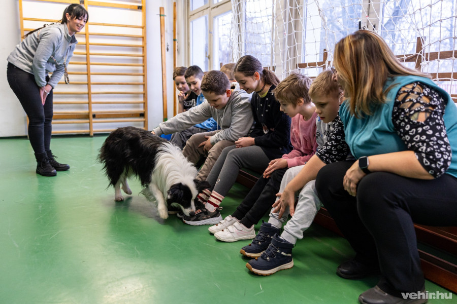 Egy ilyen alkalomra mi is bepillanthattunk: az elsős és kilencedikes diákoknak Sáfár Ferenc gyógypedagógus vezetett játékos foglalkozást pénteken, a nap sztárja pedig egyértelműen Tucker, az ötéves border collie volt. Ezt a fajtát tartják az egyik legintelligensebb kutyának, és a border collie nagy hasznát is veszi az eszének: juhászkutyaként pillanatok alatt felméri a nyáj mozgását, és céltudatosan képes a juhász utasításainak megfelelően terelni a birkákat. Ezt a testet és az agyat egyaránt megdolgoztató feladatot Tucker is gyakorolja: gazdájával, Sólyom Tímeával időnként meglátogat egy nyájat, ahol hódolhat ősi hivatásának. Tucker azonban nem egyszerű juhászkutya: terápiás felkészítésen vett részt, így az emberek társaságában is fontos munkakört tölt be. Ezúttal is otthonosan mozgott a Bárczi tornatermében, és élvezettel végezte el a rá bízott feladatokat. A közös játék nála jobban már csak a gyerekeknek tetszett.