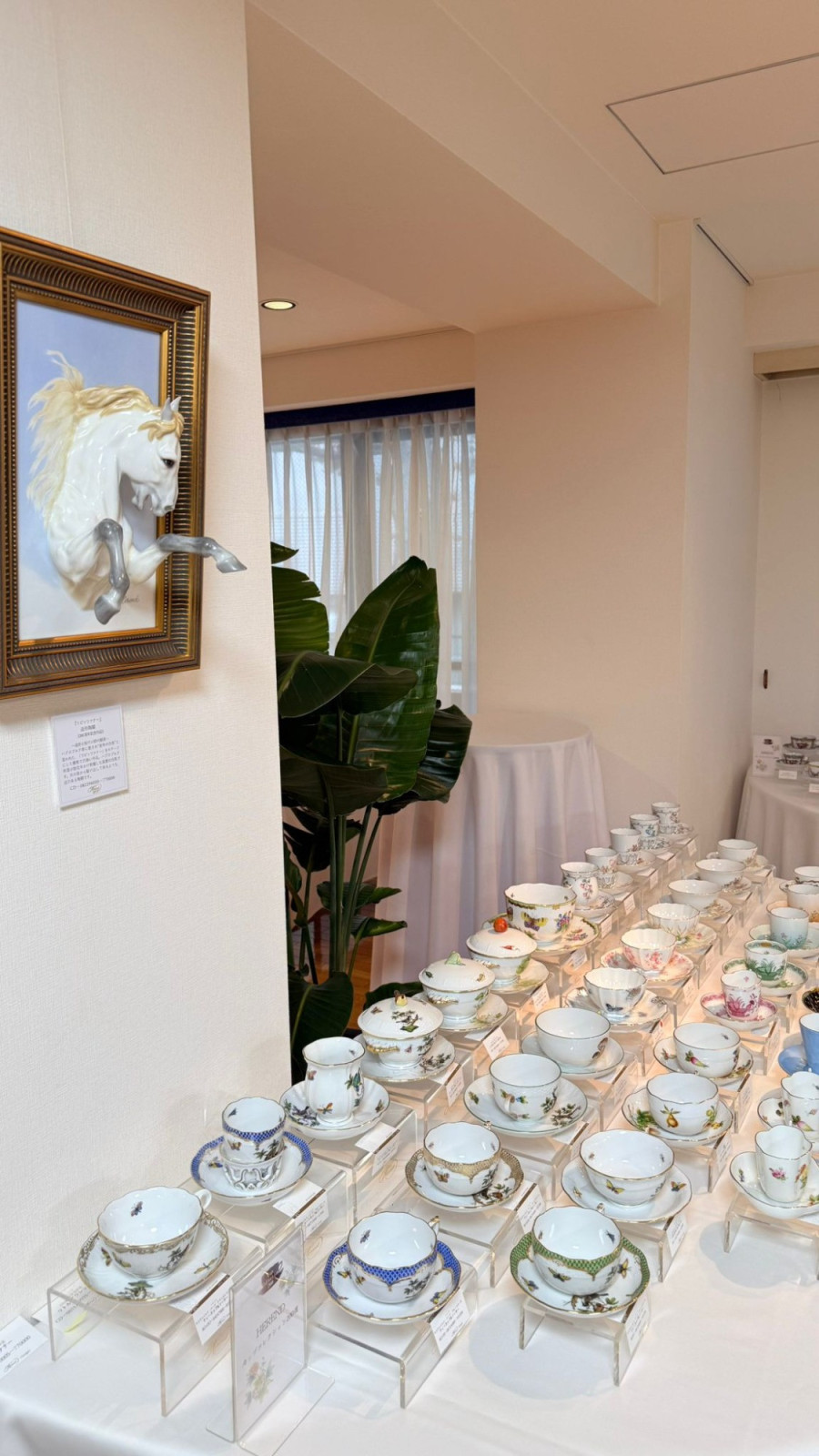 A tárlaton 200 darab, a Herendi Porcelánmanufaktúra jól ismert motívumaival díszített teáscsésze szett került bemutatásra. A vendégek különösen nagy figyelmet szenteltek a jubileumra készített, herendi mesterfestők által alkotott daraboknak, így a pillangó motívumú porcelánoknak és a háromdimenziós porcelánplaketteknek, amelyek egyszerre tükrözték Herend gazdag hagyományait és a megújulásra nyitott szemléletet.