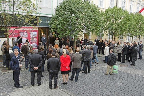 Dr. Lőrincz Katalin a Veszprémi Turisztikai Közhasznú Nonprofit Kft ügyvezetője, és Temesvári Balázs a Közép-dunántúli Regionális Fejlesztési Tanács elnöke az iroda megnyitásánál jelentőségéről és technikai információkról beszélt.