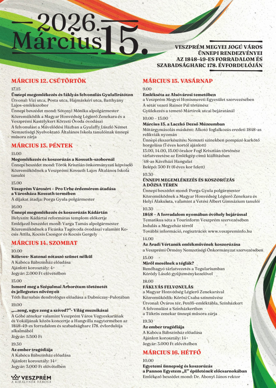 Rendezvények Veszprémben a nemzeti ünnep hetében