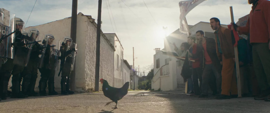 A filmben emberek is szerepelnek, és közöttük is kibomlik egy komplett történetszál, a fókuszunk azonban végig a főszereplő tyúkon marad. A rendező tobzódik a helyzet teremtette lehetőségekben. Pálfi a megszokott filmes eszközökhöz nyúl, és azokat azokat irányítja rendhagyó főhősére: olyan képkivágásokat használ, olyan látványt teremt, mintha emberi színészekkel dolgozna. A játékosság abban is megjelenik, ahogy a rendező különféle zsáner jeleneteket valósít meg: láthatunk akciófilmekből megszokott üldözést, és megelevenednek a romantikus filmek már-már nevetségesen idealisztikus pillanatai, amikor a tyúk találkozik a kakassal, a háttérben pedig felcsendül egy szenvedélyes görög dal.