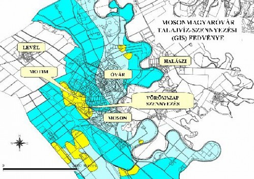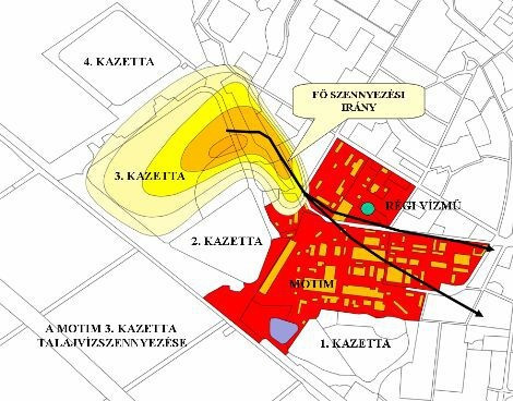 Néhány konkrét eredmény az elmúlt időszakból. Az 1. ábrán a mosonmagyaróvári 3. tározó talajvizet érintő kiáramlási térképe látható, amelyen a felmelegedett talajvíz adatait szerkesztettük ki a talajvízkutak mérései és felszíni infravörös felderítés alapján. A második ábra pedig a szennyezés talajvízben elfoglalt helyzetét mutatja 2000 körül. A 3. ábra az ajkai 8. medence felszínen is látható szennyeződése a ’90-es évek elején.
