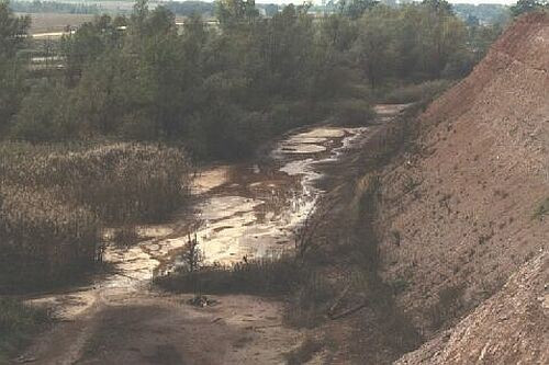 Ugyanis ezekből a tározókból mind közvetlenül a gátak külső oldalánál nyíltan, mind a medencékből közvetlenül a talajba, talajvízbe (nem látványosan) folyamatosan áramlik a szennyezett anyag, valószínűleg a vörösiszapból a nyomás hatására végleg kipréselődő lúgos kémhatású folyadék.