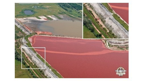 Egy 2010 júniusában készült felvételen jól látható a kolontári vörösiszap-tározó hétfőn átszakadt 10-es kazettájának egy helyen meggyengült fala. A tározókazettákat körülvevő haváriacsatornákban több helyen látható vörösiszap, ami egyértelműen szivárgásra utal. Ilyen esetben nem csak a csurgalékot kell kezelni, hanem a szivárgást is meg kell szüntetni.