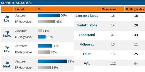 Veszprémi pontszerzők: Bovánovics M. 18, Mérész 20, Jilling 10, Kováts 2, Nagy 12, Oltárczy 12, Kiss B. 2.