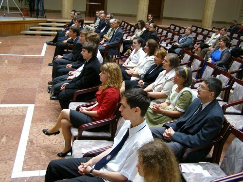 legjobb diákok (harmincketten), s felkészítőik könyvjutalmakat és okleveleket