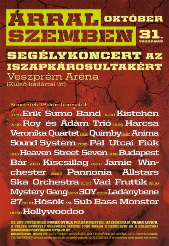 Árral szemben elnevezésű, 12 órás megakoncert bevételével járul hozzá a hazai underground szcéna az ajkai vörösiszap-katasztrófa károsultjainak megsegítéséhez. A Veszprém környéki zenekarok felhívására közel 20 zenekar és énekes vesz részt a nagyszabású segélykoncerten, melynek házigazdája a Quimby egyik frontembere, Varga Livius lesz.