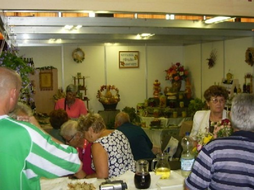 Asztalaikon sonka, szalámi, sajt különlegességeket kínálnak, finom olasz borok társaságában. A standok között az egészséges életmód képviselői is fellehetők, biotermékeikkel. Veszprém megye meghatározó nagy iparcégei is képviselték magukat, ők a hangsúlyt a környezetvédelemre fektetik. A csarnok belső színpadán számos együttes adott és ad koncertet. A kiállítást este 6 órakor Németh Árpád polgármester zárja.