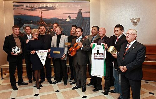 A jelenlegi magyar labdarúgó válogatott által dedikált futball-labdát Horváth Lajos, a Magyar Gyermek Labdarúgó Szövetség főtitkára, a hazai kézilabda-válogatott dedikált mezét Firnicz József, a Magyar Kézilabda Szövetség utánpótlás igazgatója, a vízilabda-válogatott aláírását magán viselő pekingi olimpiai zászlót pedig Gerendás József szállodatulajdonos adta át dr. Navracsics Tibor miniszterelnök-helyettesnek.