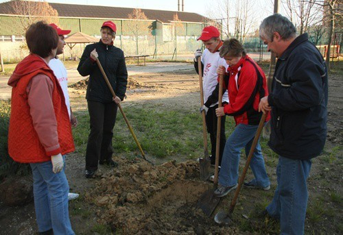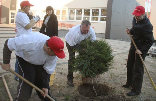 A Budapest Bank veszprémi fiókjának munkatársai aktív szerepet vállalnak a helyi közösség életében, évről-évre önkéntes munkával is segítik a helyi oktatási intézményeket. A csütörtök délutáni önkéntes akció során a Kozmutza Flóra Óvoda Általános Iskola Készségfejlesztő Speciális Szakiskola és Kollégium dolgozóival közösen parkosítással, különböző szabadtéri eszközök felújításával és faültetéssel tették szebbé az intézmény udvarát. A bank az önkéntes munka mellett 100 ezer forinttal is hozzájárult a munkálatokhoz szükséges eszközök és anyagok beszerzéséhez.
