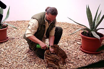 Ács Péter a veszprémi Kittenberger Kálmán Növény és Vadaspark egyik gondozója. Azt mondja - komoly figyelmet igényelnek az apróságok, akiket a húsvéti ünnepek alatt a kiállító teremben berendezett nyuszisimogatóban láthatott a közönség. A kicsik már nem cumiznak. Malactápot kapnak, amit ügyesen, önállóan fogyasztanak el tálkájukból.