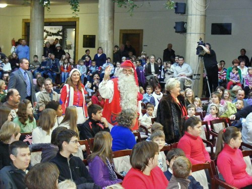 Némedi Lajos, Veszprém alpolgármestere köszöntőjében üdvözölte a Mikulást és segítőit, a rendezvény szervezőit. Emlékeztetett, testvérvárosunk, Rovaniemi a Mikulás hivatalos otthona, a lappföldi Fülhegyen lakik, ahonnan jól hallja a gyerekek kívánságait. Kiemelte a városok közötti sokrétű együttműködést, amit a 27 éve működő Veszprémi Magyar-Finn Egyesület és a Kossuth Lajos Általános Iskola közösen tart életben. Az alpolgármester gondolatát egy tanulságos mesével zárta, amely rámutatott, „csak az idő érti meg, hogy az életben milyen fontos a szeretet.”