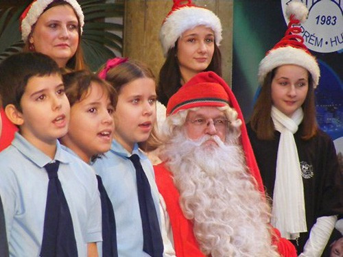 – Sziasztok! – üdvözölte a Pannon Egyetem aulájában összegyűlt gyerekeket és felnőtteket Joulupukki, a finn Mikulás, aki manói kíséretében érkezett a Kukkantó 20. születésnapjára. Megköszönte a Szilágyi Erzsébet Keresztény Általános Iskola Csengettyű Zenekarának zenés köszöntőjét és a Simonyi általános iskola Kicsinyek Kórusának előadását. – Sok szeretettel üdvözlünk mindenkit Lappföldről – mondta magyarul a nagyszakállú, majd finnül folytatta gondolatát, amit egyik segédje tolmácsolt. Elmondta, nagy öröm számára, hogy ennyi vidám gyereket láthat itt, kiemelte Veszprém és Rovaniemi régi, szoros testvérvárosi kapcsolatát, majd az ünneplés folytatására kérte fel a jelenlévőket.