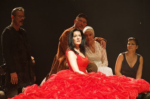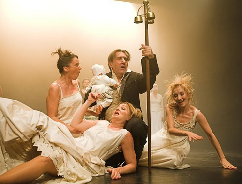 Eperjes Károly hat éve még pimasz vitalitással, izmos cinizmussal formálta meg a szálakat mozgató Pukkot, dinamizmus és erő volt legalább az ő játékában (ha az előadás egészében nem is). Tréfáiban a nyers gonoszság manifesztálódott, nevetésétől itt-ott elrettent a néző. Most fáradt volt, sokkal halványabb.