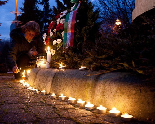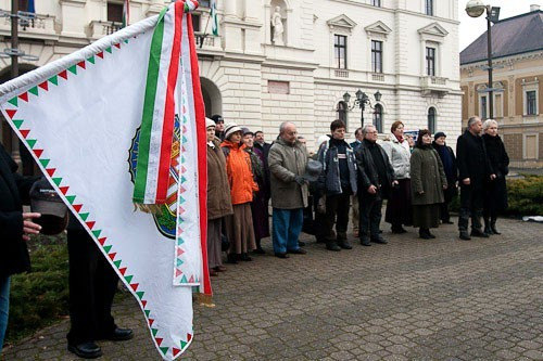 A jelenlévők koszorút és gyertyákat helyeztek el a mártír tanár emlékművénél.