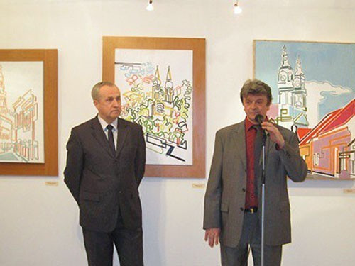 – Ebből a 32 alkotásból is látszik, hogy a játékosság végigkísérte Borbély Lajos egész pályáját, életét és mindennapi gondolkodását – nyitotta meg a tárlatot dr. Kontrát Károly, a belügyminisztérium államtitkára. – Az egyvonalas technika valódi bravúrművészet. Jelentős részben városrészleteket látunk képein, főleg Pápáról, de Veszprém városát is megörökítette.
