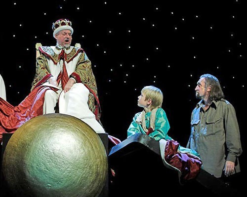 A bolygók és lakói bemutatásának kis betétei jól eltaláltak. A díszletek itt látványosak (Libor Katalin munkája), a karakterek erősek. A király – Benczédi Sándor – képi megjelenése megszólalásig emlékeztet a könyvben található Saint-Exupéry-rajzokra, ő nagyon jól tart görbe tükröt az értelmetlenül hatalomért lihegésnek.