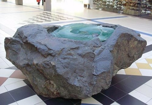 A második műalkotás Lugossy Mária szobrászművésznő gránitból készített Rhea című nonfiguratív, modern szobra. A művésznő jelezte az önkormányzatnak, hogy alkotását ingyenesen tulajdonba adná. A szobor jelenleg a Balaton Pláza épületében található, amely a művésznő szerint nem megfelelő helyszín egy ilyen színvonalas mű részére, így szeretné, hogy az ingyenes átadással egyidejűleg a város egy méltóbb helyet találna a szobornak.