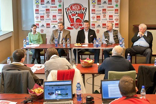 Egy rendhagyó kiállításról, a férfi kézilabda-világbajnokságról, s a klubidényről tartott sajtótájékoztatót az MKB Veszprém KC az arénában.
